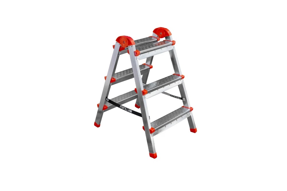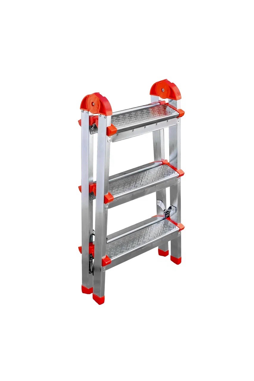 Между собой две стороны стремянки соединены шарнирами из прочного АБС пластика, обеспечивающими складывание и раскладывания изделия. Каждая ступенька лестницы-стремянки соединена с тетивами в восьми местах полуавтоматической сваркой в среде защитного газа, чем обеспечивается высокая надёжность и долговечность соединения. Для предотвращения скольжения при работе лестница-стремянка комплектуется противоскользящими накладками.