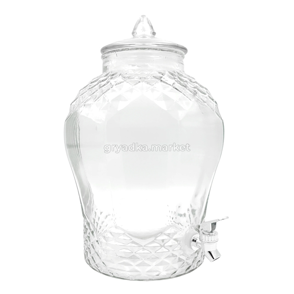 Отличная альтернатива графину! Она представляет собой стеклянную емкость большого объема с широким горлышком и крышкой.
