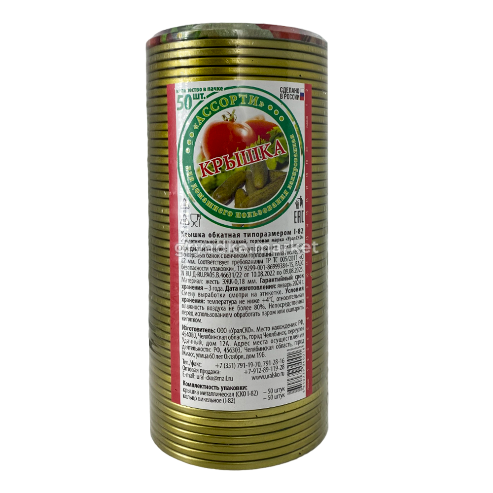 Крышки СКО 1-82 Ассорти лак обеспечивают надёжную укупорку и длительное сохранение качества домашних и промышленных заготовок.