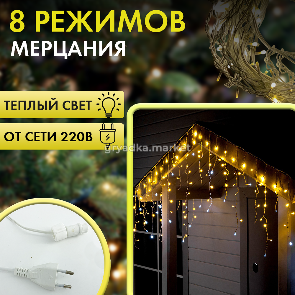 Светодиодная гирлянда бахрома с режимом Flash-мерцания подарит ощущение сказки и создаст уютную атмосферу.