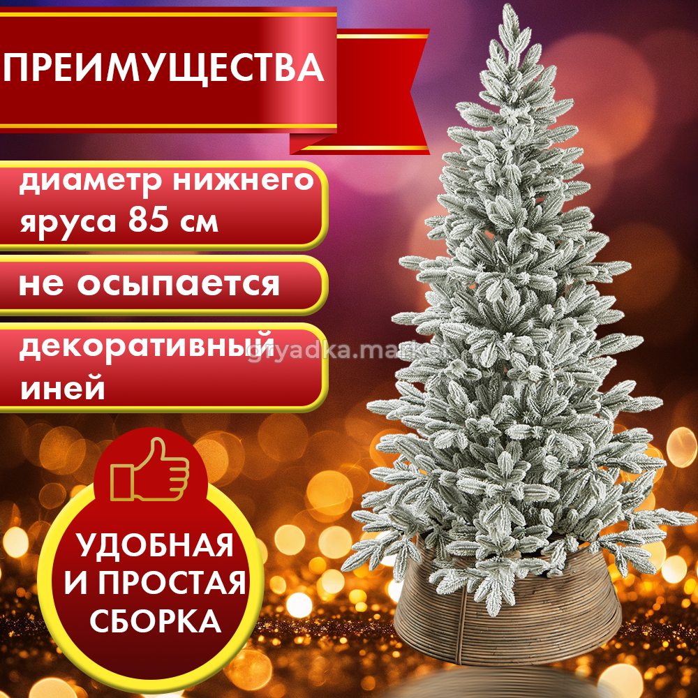 Материал подставки из прочного пластика, обеспечивает надежную и стабильную основу для ели, что позволяет установить ее в любом месте в Вашем доме.