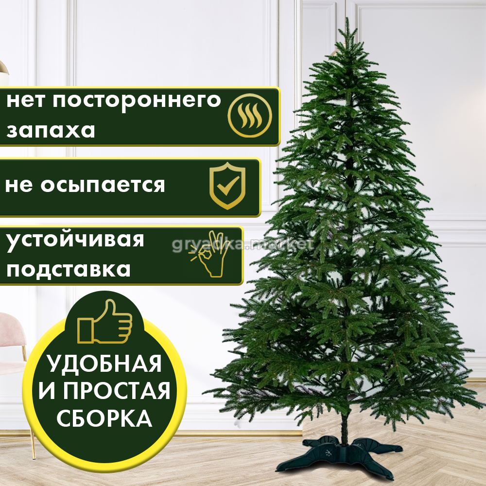 Материал подставки из прочного пластика обеспечивает надежную и стабильную основу для ели, что позволяет установить ее в любом месте в вашем доме.