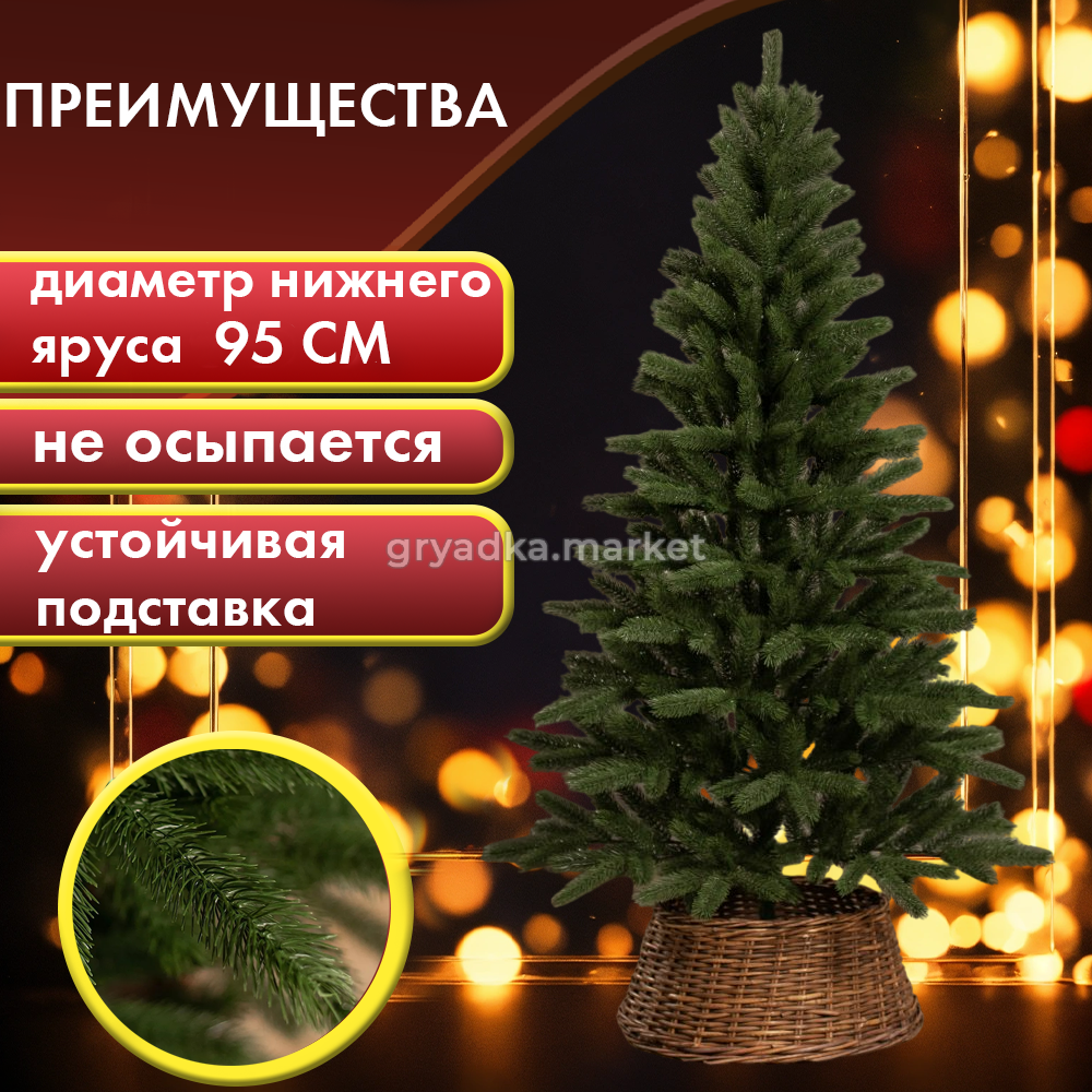 Материал подставки из прочного пластика обеспечивает надежную и стабильную основу для ели, что позволяет установить ее в любом удобном месте в вашем доме.