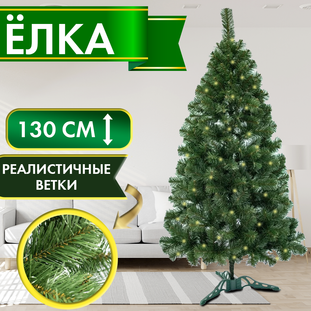 Ель имеет прочную пластиковую подставку, что обеспечивает ей стабильность и легкость в установке.