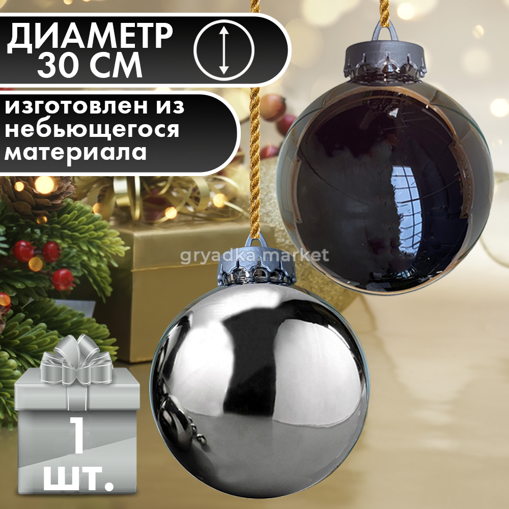 Новогодний шар большого размера особо актуален для украшения высоких елок, интерьеров торговых центров, ресторанов, кафе, а также для создания самостоятельных дизайнерских композиций.