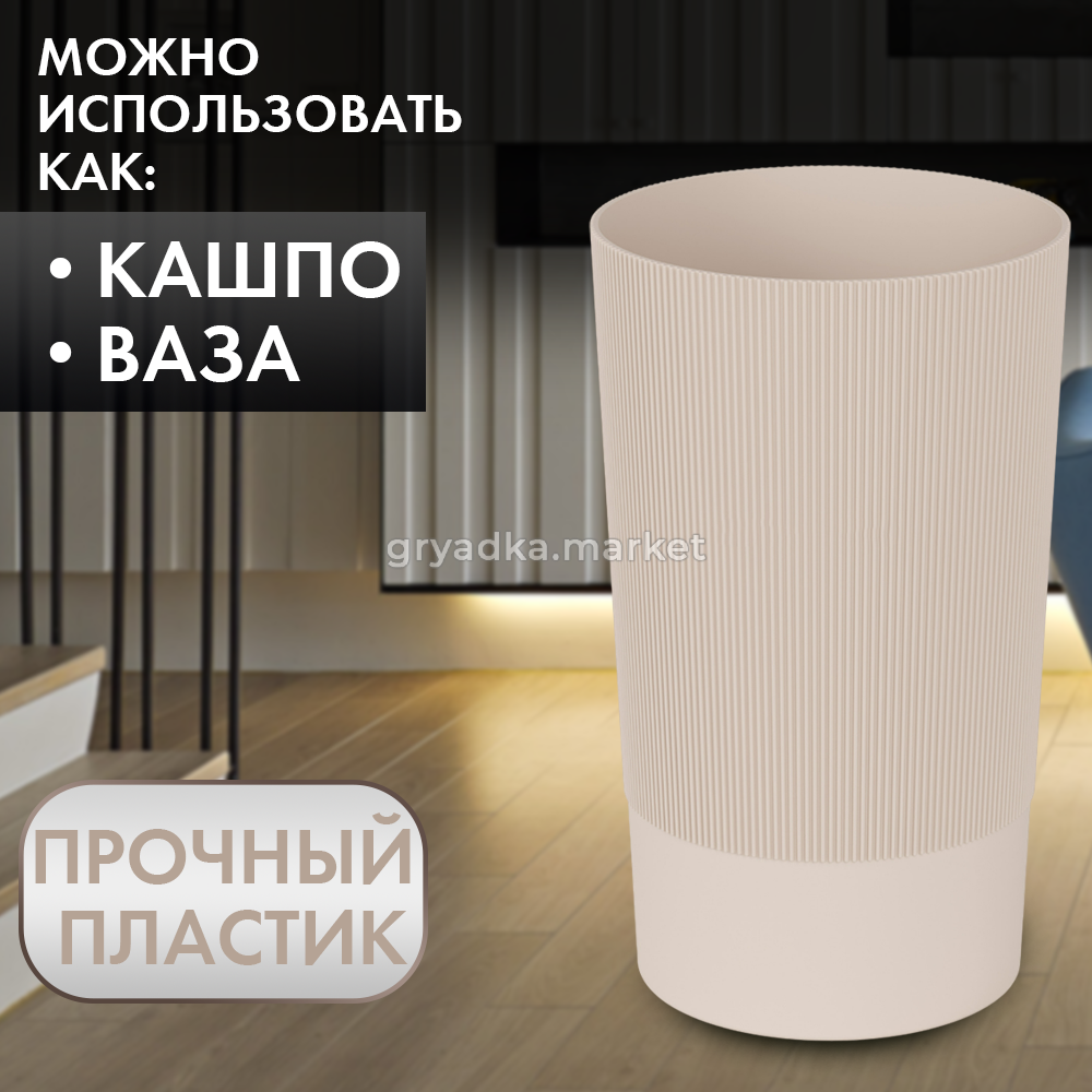 Выполненный в спокойных тонах, вазон гармонично впишется в любой интерьер, добавляя ему изюминку и стиль. Его лаконичный дизайн подчеркивает красоту цветов, а не отвлекает внимание от них.