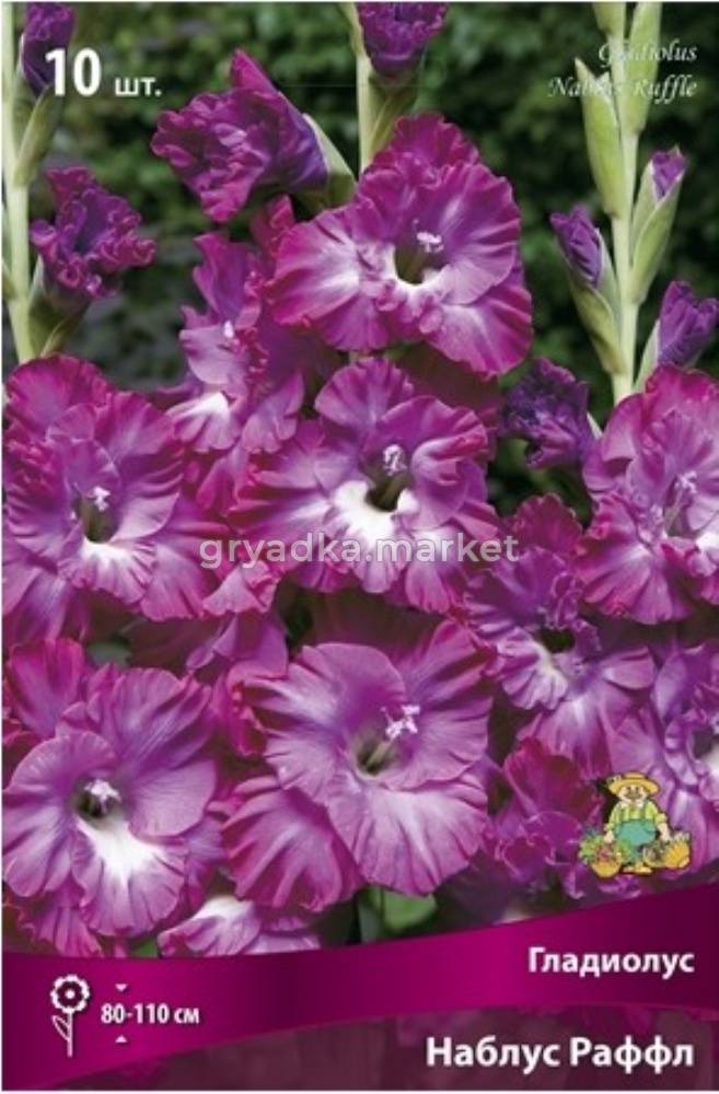Наблус Раффл - высота растения 80-110 см. Цветок пурпурно-сиреневый с кремово-белым акцентом на нижнем лепестке.