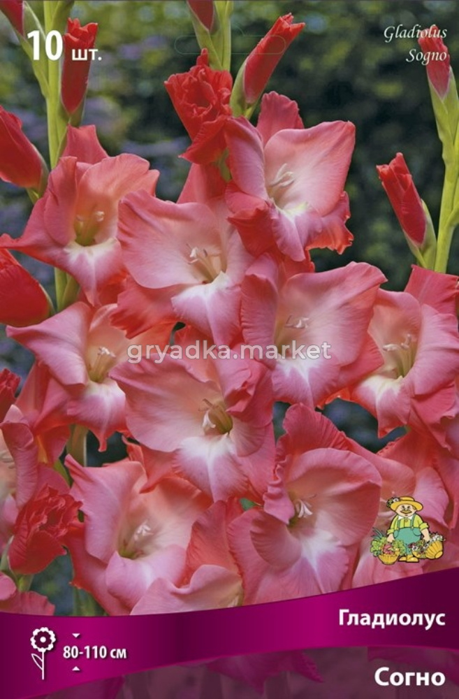 Согно - высота растения 80-110 см. Цветок розово-лососевый с бело-кремовым пятном.