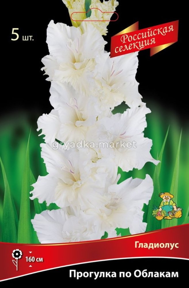Прогулка по Облакам (автор Фотин) - Срок цветения средний. Цветы белые с нежно-кремовым нижним лепестком. Тычинки сиреневые. Соцветие плотное, высотой 80 см, состоит из 24 бутонов, одновременно открыты 8. Лепестки украшены красивой гофрировкой.