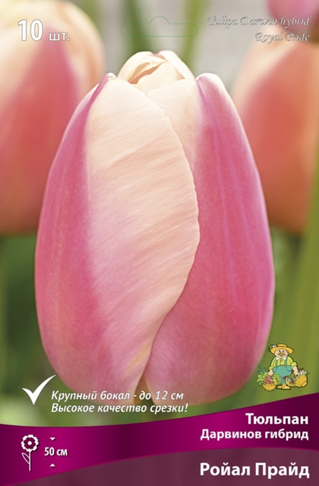Ройал Прайд - высота растения 50 см. Цветок бело-розовый, глянцевый, переливчатый, даёт качественную срезку.