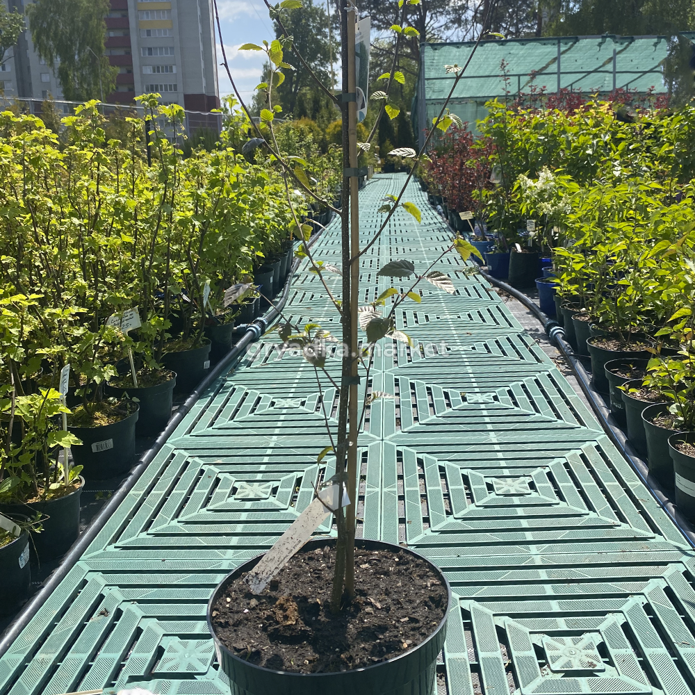 Листья очень крупные (6–10 см), ярко-зелёные, слегка опушённые; осенью – золотисто-жёлтые.