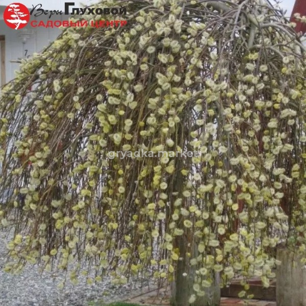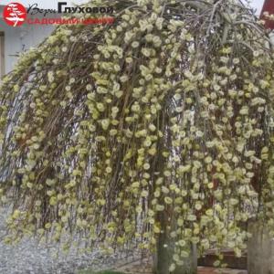 Мужской клон плакучей формы. Высота зависит от высоты прививки, и составляет в основном не более 2-х м, диаметр кроны 1-1.5 м. Ветви плакучие, малоподвижные, зеленовато-бурые, свисающие до земли. Листья темно-зеленые, сверху - блестящие, снизу покрытые серо-белым опушением. Цветение в начале мая 7-12 дней , до распускания листьев, на побегах прошлого года. Сережки многочисленные крупные, густые, ароматные, золотистые, очень декоративны.