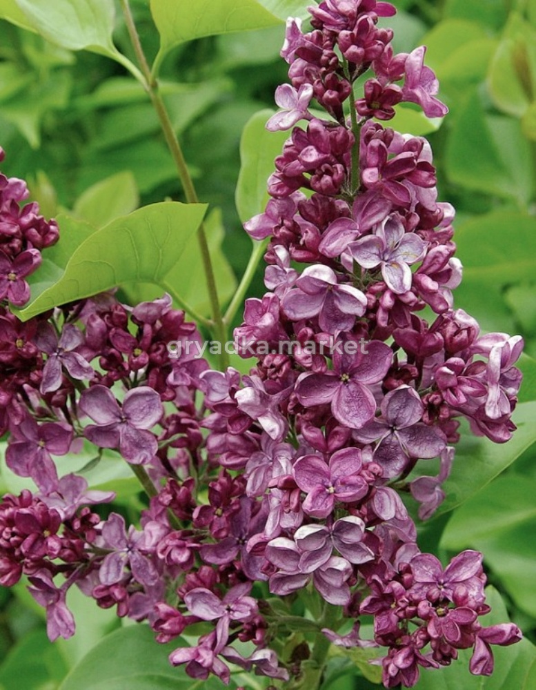 У сорта Анна Шиач листья тёмно-зелёные, округлые, плавно заострённые. Бутоны очень тёмные, пурпурные. Цветки крупные 3,5 см, простые, насыщенно-фиолетового, глубокого бархатного тона. Соцветия плотные, стройные, разветвлённые, крупные эффектно возвышаются над густой листвой. Цветет обильно и продолжительно в мае-июне.