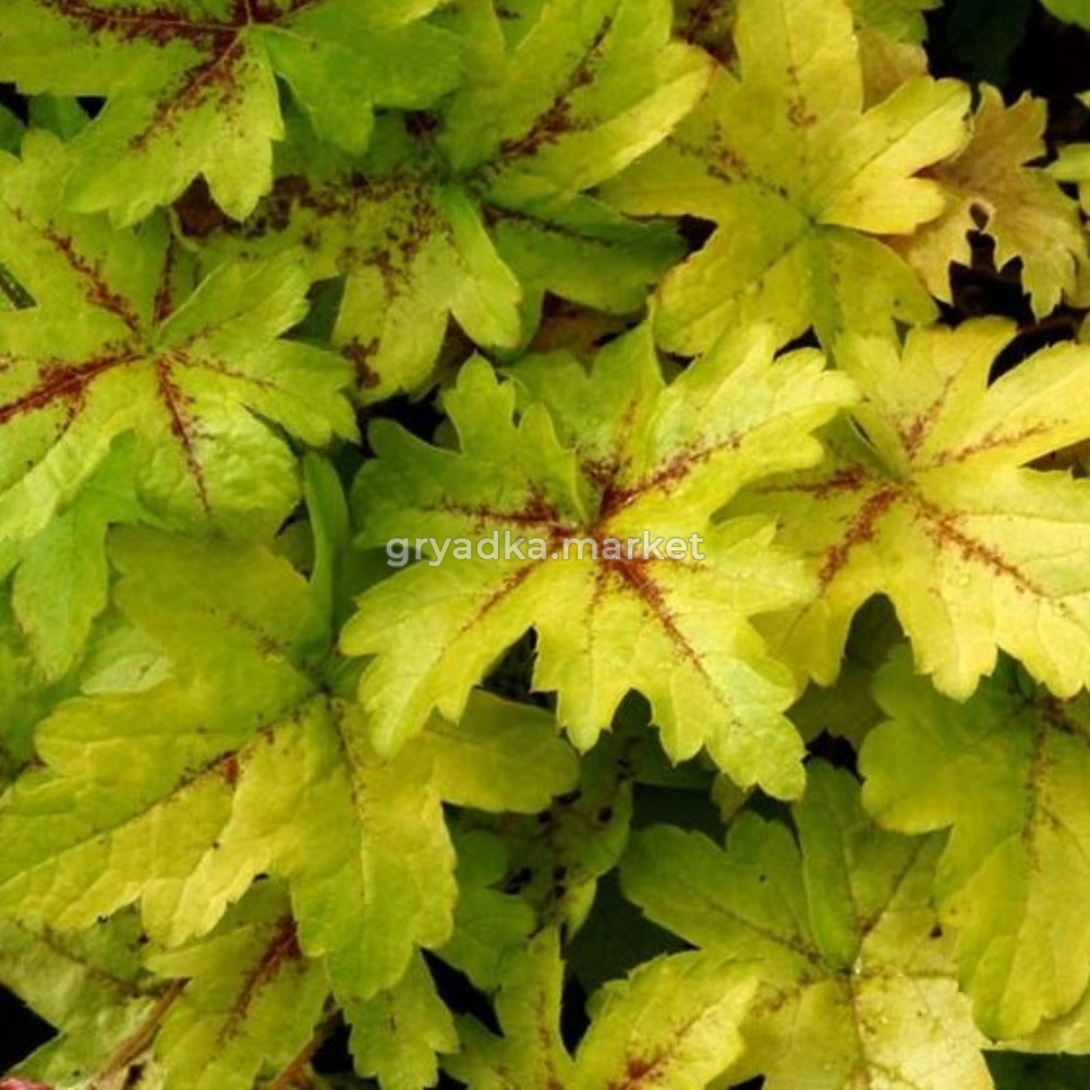 золотисто-жёлтый с тёмно-бордовыми прожилками, кленовидный