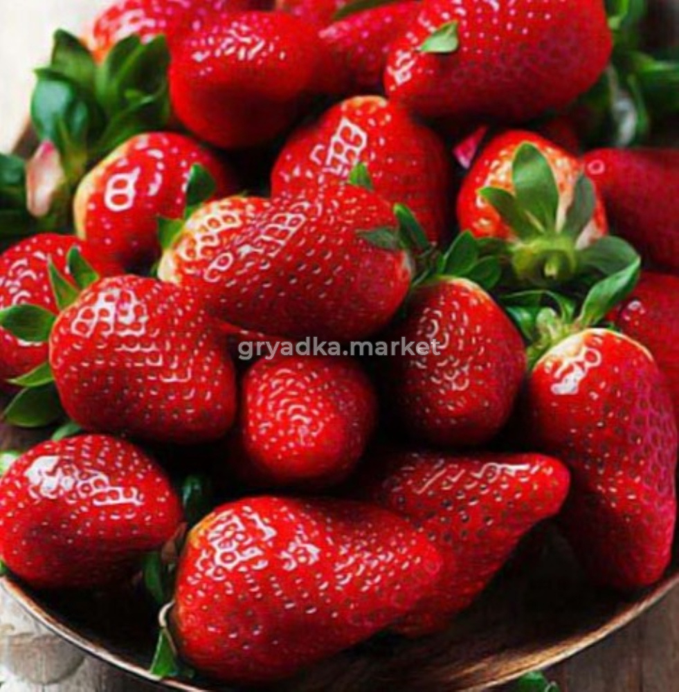 Ягоды крупного размера, средний вес плодов 20-30 гр. Мякоть сочная. Форма плода: коническая. Цвет ягоды красный. Сорт земляники крупноплодная Роксана имеет приятный аромат, десертный.