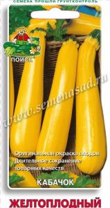 Урожайный сорт с плодами превосходного вкуса. Среднеспелый. Период от всходов до плодоношения 45-60 дней. Растение кустового типа. Плоды удлиненно-цилиндрические с сужением к плодоножке, массой 0,7-1,8 кг. Поверхность гладкая и слаборебристая, желтой окраски. Мякоть кремовая и светло-желтая. Вкусовые качества отличные. Рекомендуется для потребления в свежем виде и консервирования.