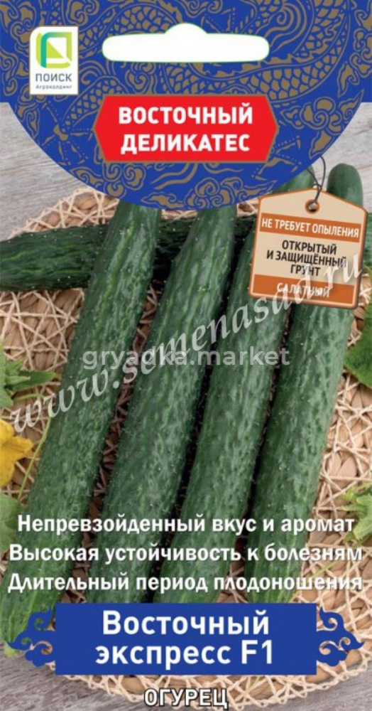 Партенокарпический гибрид для открытого и защищенного грунта. Период от всходов до плодоношения 45-50 дней. Растение мощное, ветвление среднее. Число завязей в узле 1-2. Зеленцы цилиндрической формы, без горечи, длиной 35-40 см, массой до 300 г, темно-зеленой окраски, бугорки крупные, расположены часто, белошипые. Ценится за отличный вкус, хруст и аромат и высокую устойчивость к болезням. Идеален для свежих салатов.
