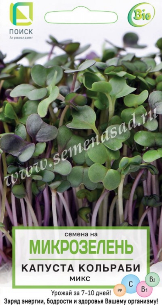 В состав входят семена капусты кольраби: Венская белая 1350, Виолета, Мадонна