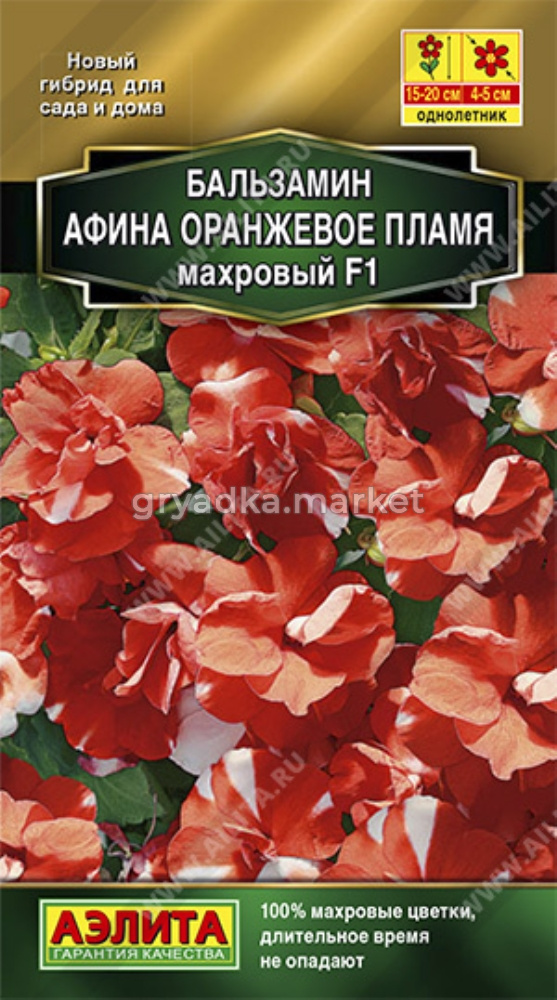 За яркие цветки бальзамин в народе называют «огонек». Популярное комнатное растение все чаще выращивают как летник. Новая компактная (15-20 см) гибридная серия АФИНА F1 отличается необычной пестрой окраской крупных (5 см) махровых цветков и обильнейшим цветением. Благодаря этому создается впечатление пестрого ковра. Длительное время цветы не опадают и сохраняют декоративность. Серия прекрасно подходит для сада – растения цветут непрерывно и выглядят нарядно весь сезон. Кустики отлично смотрятся в контейнерах. Посадки можно разместить даже в довольно густой полутени, так как растения нетребовательны к освещению. В таких условиях окраска цветков бывает даже ярче, чем на солнце. Не рекомендуется сажать бальзамин в ветреных местах. Растения осенью можно пересадить в горшки и выращивать в комнатах или сохранить до весны с последующей высадкой гибрида в грунт.