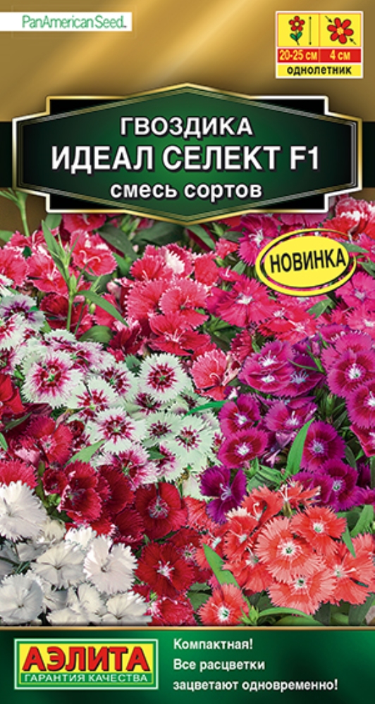Компактная обильноцветущая смесь гвоздики от американской компании PanAmerican Seed. Все расцветки зацветают одновременно! Растения формируют кусты высотой 20-25 см, с ярко-зеленой листвой, которая великолепно контрастирует с яркими цветками (? до 4 см). Гибриды переносят кратковременные заморозки. Смесь отлично подойдет для цветников, клумб, рабаток, кашпо и контейнеров.