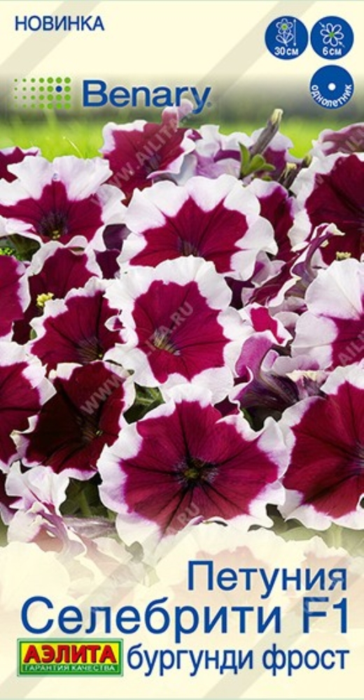 Очень известная в мире серия гибридов многоцветковых кустовых петуний. Заслуженно получила название «Celebrity», что в переводе означает «знаменитость». Растения отличаются выровненным габитусом, прекрасным боковым ветвлением, высокой декоративностью на протяжении всего сезона. Не боятся дождя и ветра. Высота кустиков около 30 см, диаметр цветков 5-6 см. Петунии великолепно смотрятся в разнообразных ландшафтных композициях в саду. В подвесных кашпо, контейнерах и вазонах для одного растения требуется до 5 л плодородного грунта.