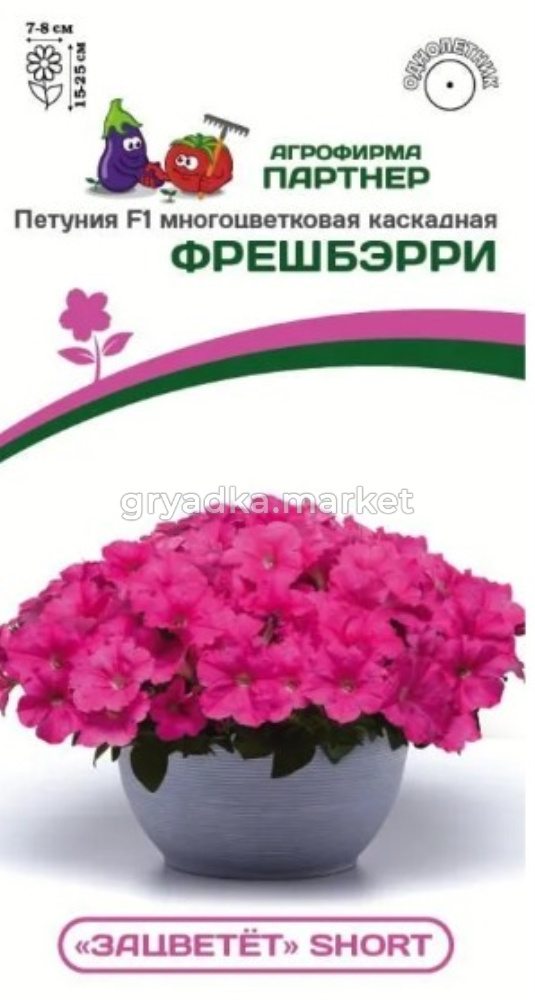 ЗАЦВЕТЁТ Short - невероятная каскадная петуния, настоящий цветочный шар! Прекрасный выбор для кашпо и вазонов, хорошо смотрится в единичных и групповых посадках в грунте. Крепкие растения отлично ветвятся, самостоятельно, без формирующей обрезки, наращивают компактный куполообразный куст диаметром 60 см, который не теряет своей декоративности в течении всего сезона. Благодаря коротким междоузлиям растение формирует так много цветов, что они полностью закрывают собою зелень. Несомненным достоинством петуний этой серии является способность молниеносно восстанавливаться после дождя, а также слабая чувствительность к длине светового дня, что обеспечивает обильное цветение в течение всего сезона. Растения прекрасно адаптированы к перепадам температур и неблагоприятным погодным условиям. Чтобы петуния полностью раскрыла свой потенциал, рекомендуем объем кашпо от 10 л на одно растение и схему посадки в грунте – 40х40 см.