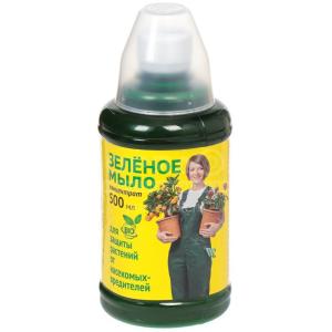 «Зелёное мыло» — старинное народное средство для защиты растений от вредителей, а также вспомогательное средство, повышающее эффективность химических средств защиты растений. Предотвращает или снижает повреждение растений тлей, трипсами, растительноядными клопами, щитовкой, слюнявкой-пенницей и другими вредителями.