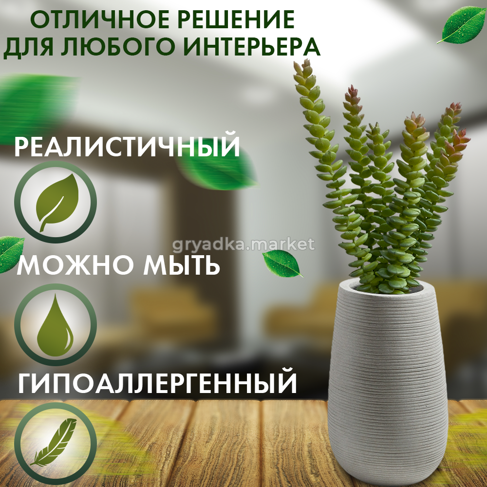 Цветы можно мыть и использовать во влажном помещении. Декоративный цветок из реалистичного материала. Зелень имеет окрас и текстуру, практически не отличимую от живых суккулентов.