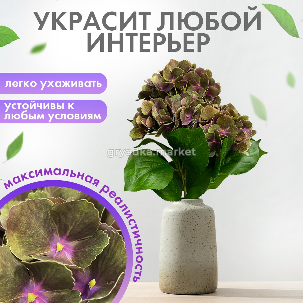 Искусственный цветок имеет ряд преимуществ: неприхотливость в уходе, не нужно поливать, подкармливать, декоративный цветок не вянет и ежедневно радует своим видом. Полностью безопасен, так как не является источником аллергии.