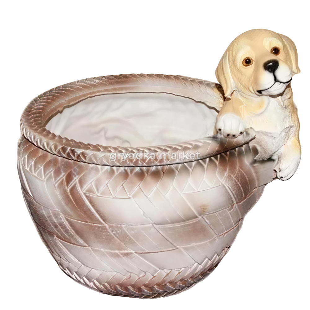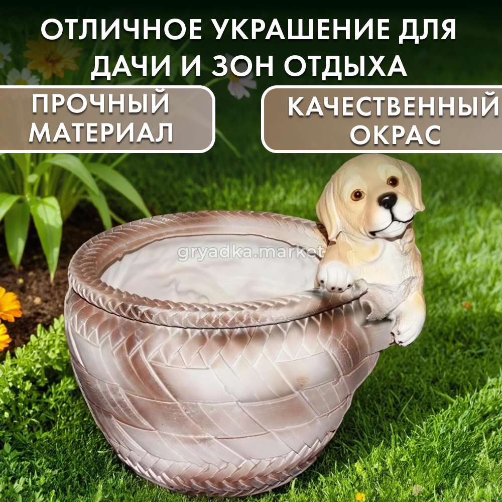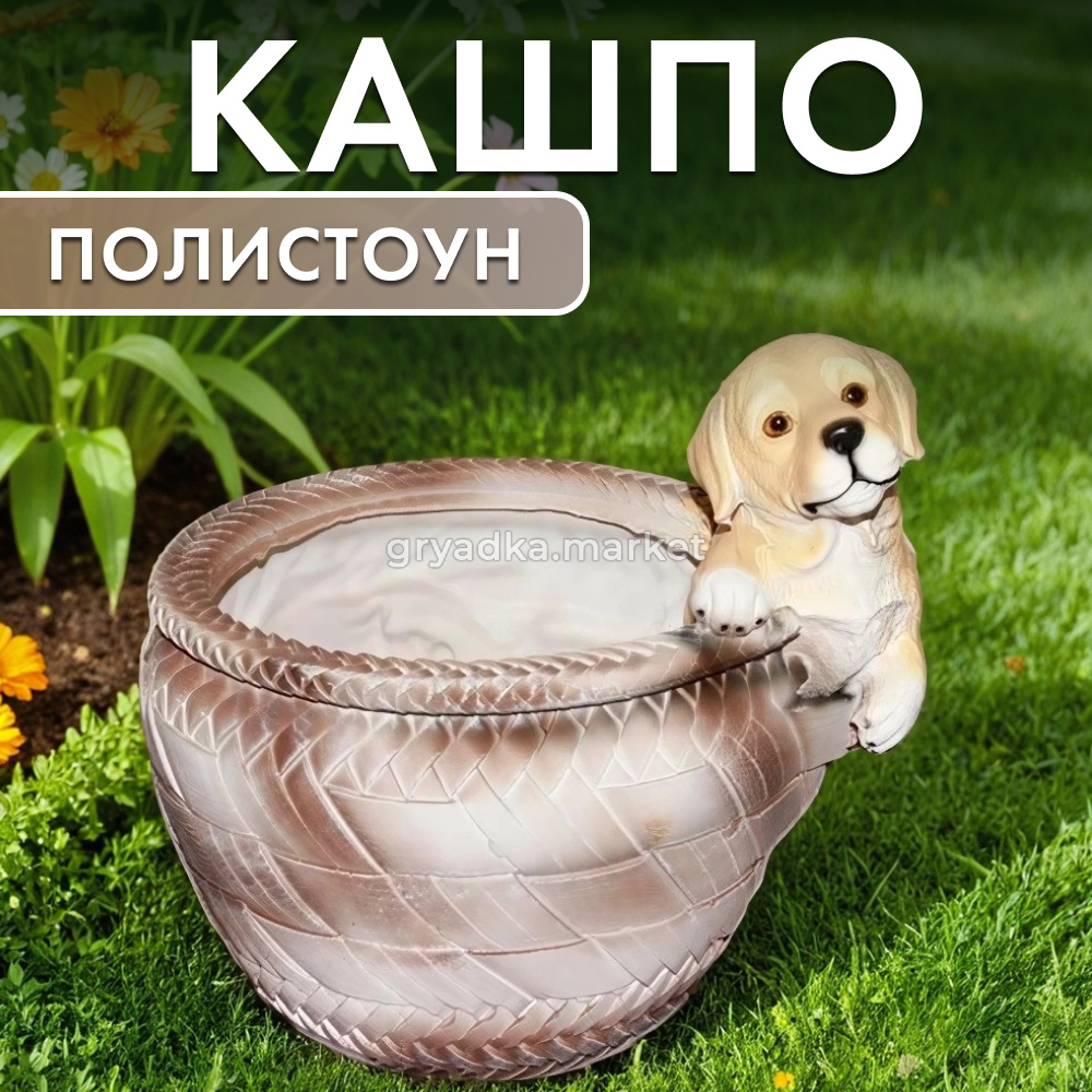 Изготовленное из полистоуна, это кашпо отличается прочностью и долговечностью, что позволяет использовать его как внутри помещений, так и на открытом воздухе. Симпатичный дизайн с щенком и корзиной обязательно привлечет внимание любителей животных и станет отличным подарком для тех, кто ценит уникальные и милые предметы декора.