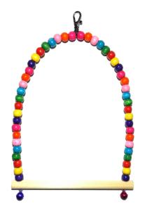 Выполнена игрушка в виде лестницы из бусин с колокольчиками, она точно развлечет даже одинокого обитателя клетки, создав иллюзию компании.
