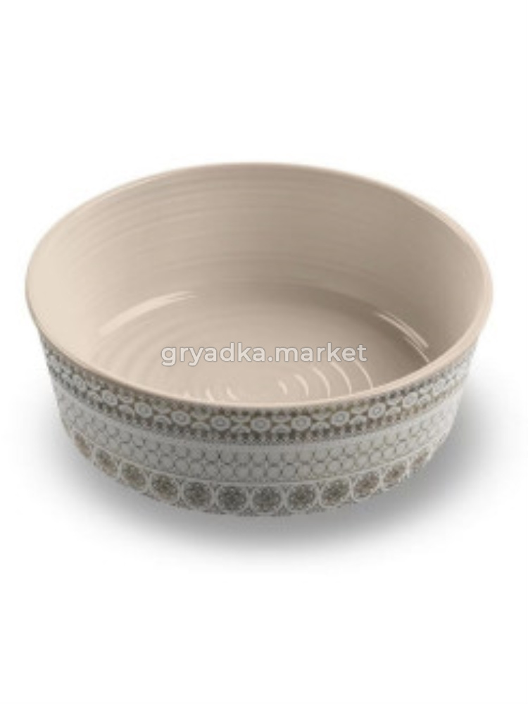 Элегантная бежевая миска в марокканском стиле выполнена из меламина и обладает великолепными свойствами - особенная текстура и плотность этого материала обеспечивает изделиям стойкость к царапинам, предотвращает растрескивание и снижает ломкость, при этом сохраняя изделию небольшой вес. Внешне изделия из меламина практически неотличимы от керамических и их можно мыть в посудомоечной машине. Для предотвращения скольжения и переворачивания на нижней части миски расположены специальные силиконовые вставки.