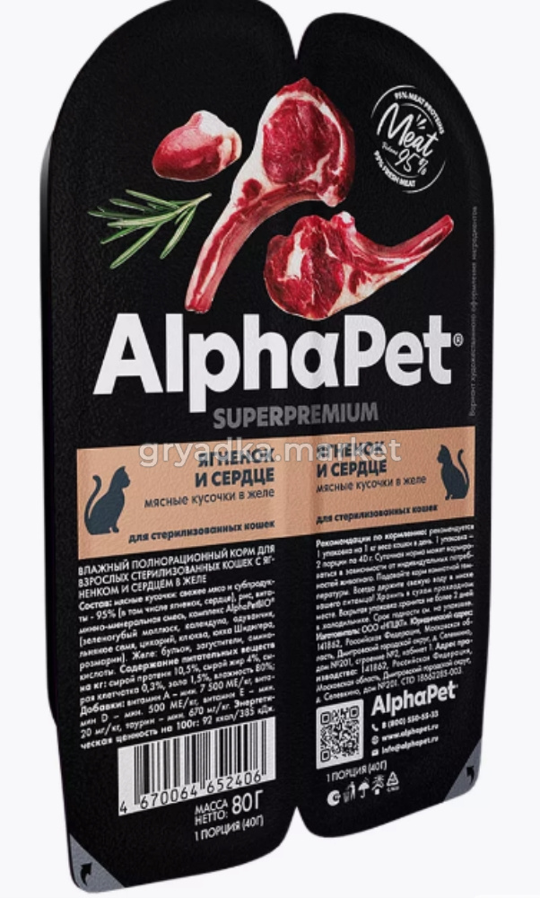 AlphaPet SUPERPREMIUM - суперпремиальное питание на основе натуральных ингредиентов. Линейка питания для животных, владельцы которых хотят быть уверены в лучшем выборе корма для своего питомца. Максимально открытый и понятный состав продукта, приготовленного по инновационной технологии из свежего мяса и с содержанием более чем 90% мясного белка!