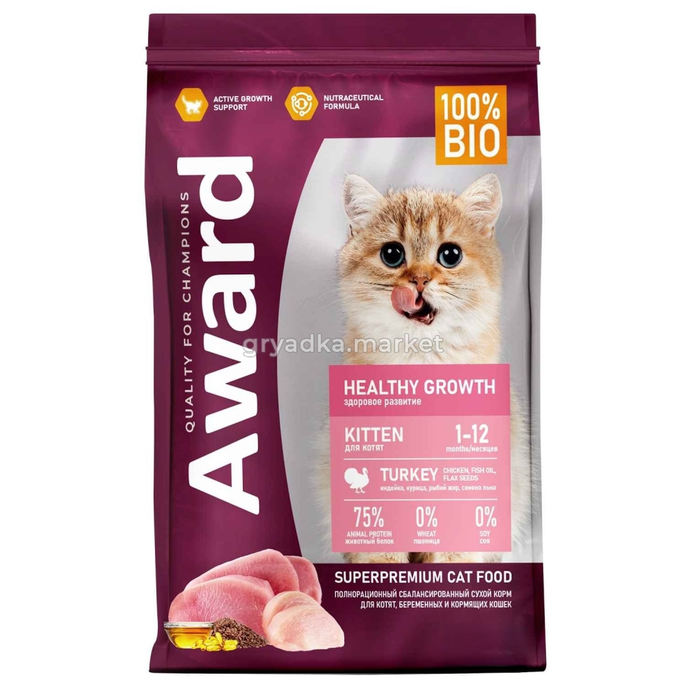 Полиненасыщенные жирные кислоты в составе способствуют гармоничному росту котенка и укрепляет его иммунитет.