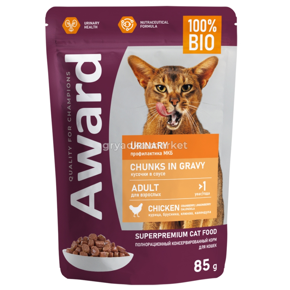 Полнорационный сбалансированный корм для взрослых кошек, помогающий снизить риск рецидива образования кристаллов и камней струвитного типа в мочевом пузыре.