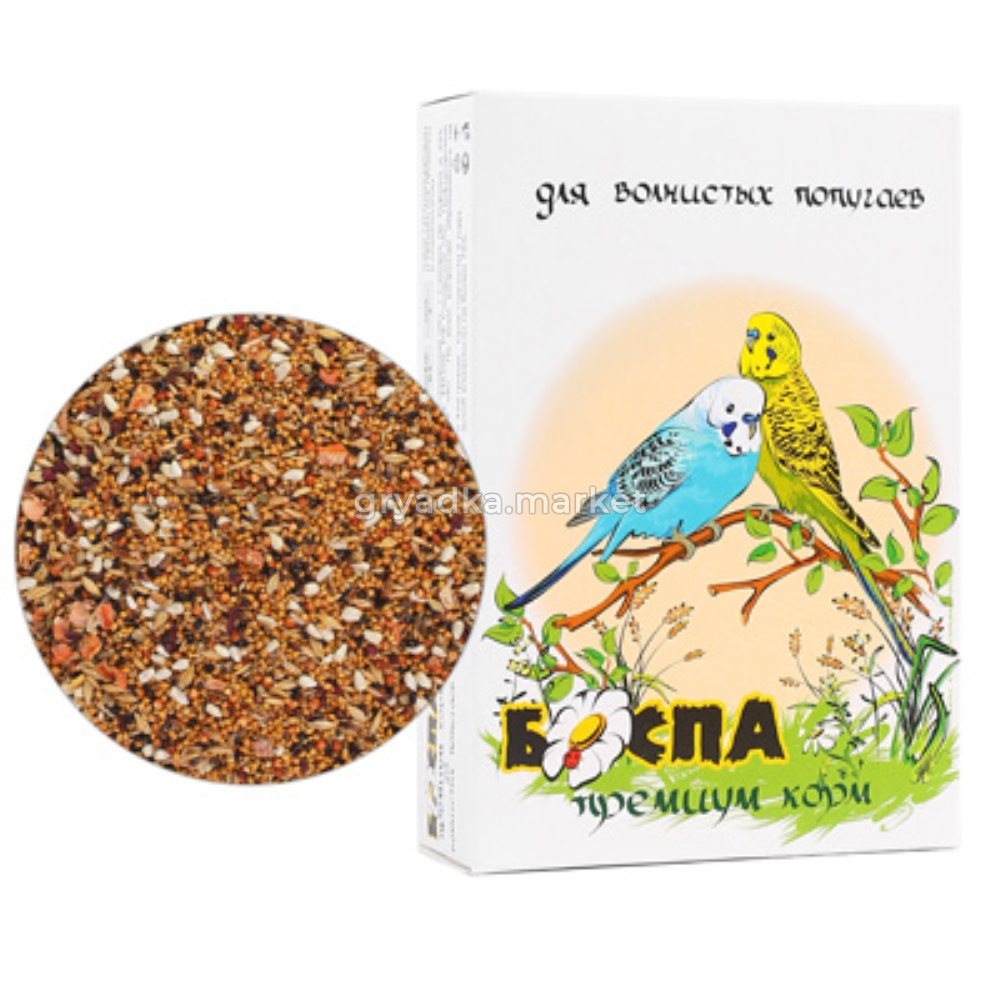 Состав: просо белое, сафлор, суданская трава, сорго, лен, рапс, семя канареечника, голозерный овес, чумиза, ячмень, пшеница, свекла, семена конопли, морковь, фенхель, комплекс витаминов (Витамин А, Витамин Д3, Витамин Е, Витамин К3, Витамин В1, Витамин В2, Витамин В3, Витамин В5, Витамин В6, Витамин В 12, Витамин Н, Железо, Марганец, Цинк, Медь, Йод)