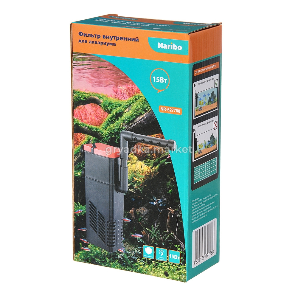 Имеет эргономичную прямоугольную форму, аккуратно впишется в угловой части аквариума.