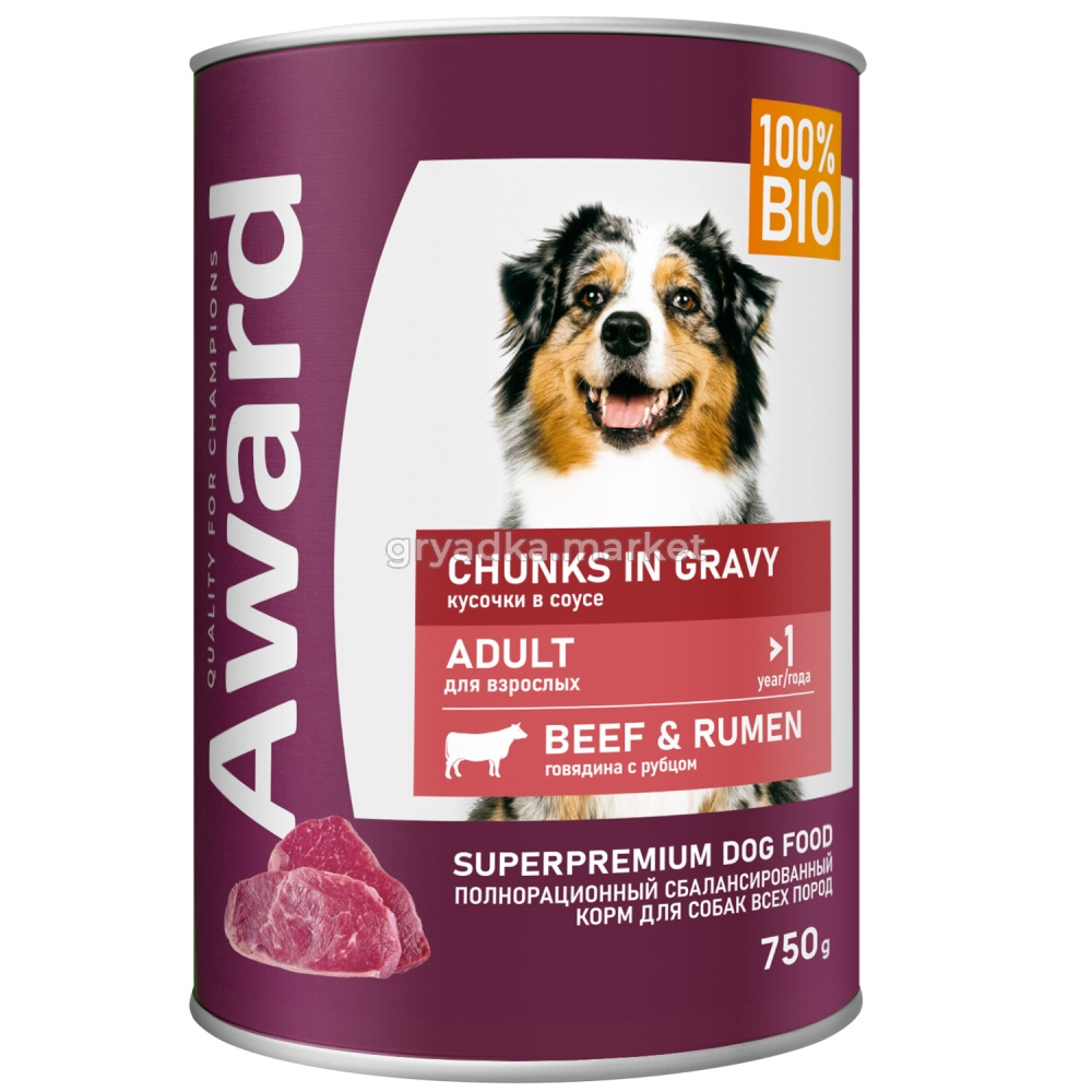 Мясо и мясные субпродукты 45% (говядина не менее 12%), рубец 4%, рис не более 2,7%, витамины и минералы, льняное масло 0,5%, экстракт эхинацеи.
