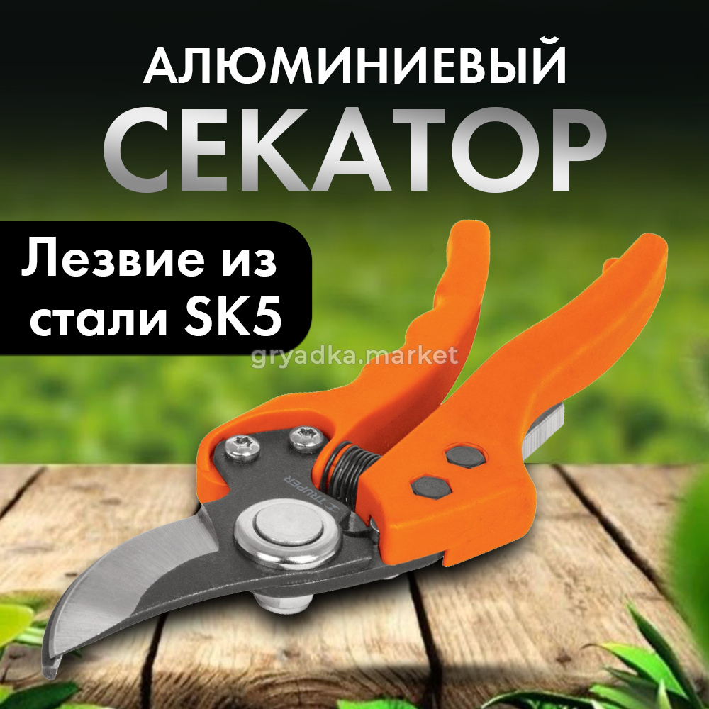 Алюминиевый корпус секатора обеспечивает легкость и прочность конструкции, что позволяет работать с инструментом длительное время без усталости. Стальные лезвия SK5, закаленные до 50 HRC, гарантируют высокую износостойкость и долговечность, сохраняя остроту режущей кромки даже при интенсивном использовании.