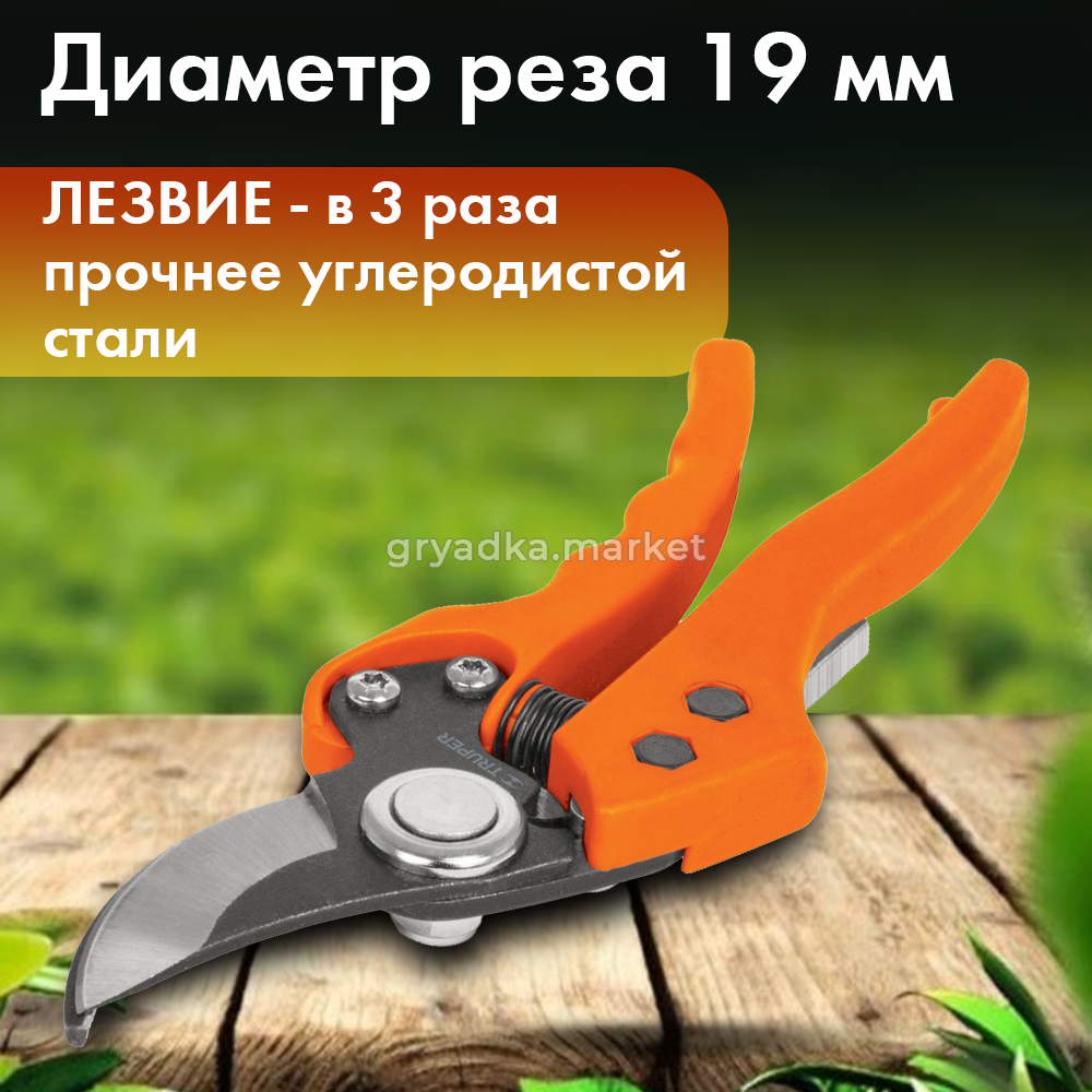 Удобные рукоятки эргономичной формы обеспечивают надежный захват и контроль над инструментом, предотвращая скольжение и обеспечивая комфортную работу даже в сложных условиях. Фиксатор лезвий позволяет безопасно хранить и транспортировать секатор, предотвращая случайное открытие лезвий.