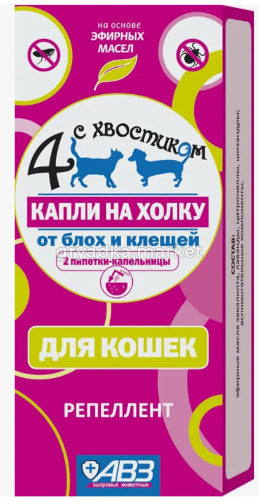 Капли репеллентные на холку «Четыре с хвостиком» в рекомендуемых дозах не оказывают местно-раздражающего, резорбтивно-токсического и сенсибилизирующего действия.