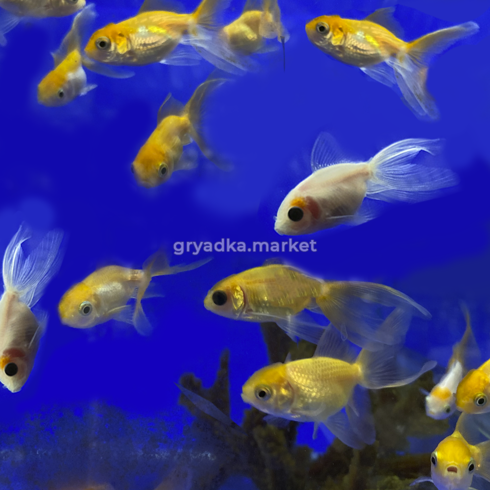 Кормить, как и всех золотых рыб, живыми кормами их заменителями и растительными подкормками.